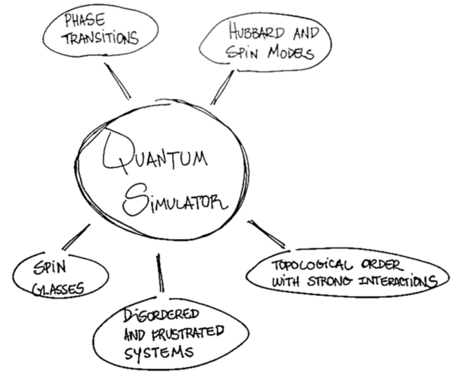That is why Quantum Simulators are being used to study fundamental theories of quantum matter. We use a quantum system to mimic other quantum systems that are of interest to us, and then we let the simulator answer all our questions. Some of the systems and phenomena that can be simulated are: